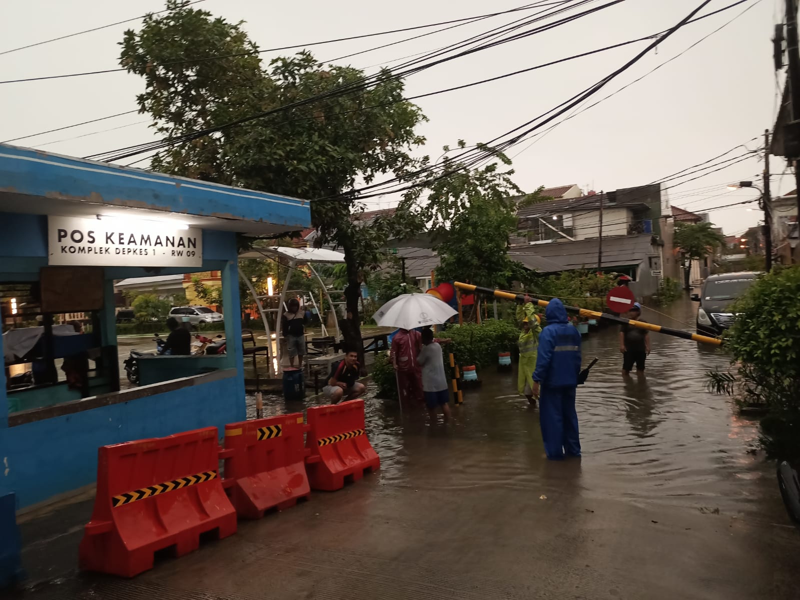 Pihak RW bersama warga setempat bergerak cepat melakukan pemantauan dan membantu mengarahkan arus lalu lintas di lingkungan komplek agar tetap aman. Selain itu, saluran air di beberapa titik juga dibersihkan secara darurat untuk mempercepat surutnya genangan.