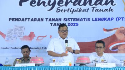 Hal itu dikemukakan Bupati Takalar Ir. H. Mohammad Firdaus Daeng Manye,.MM pada penyerahan sertifikat tanah PTSL untuk masyarakat Takalar di Aula Kantor Kecamatan Galesong Selatan Kab. Takalar, Rabu (14/1/2026).