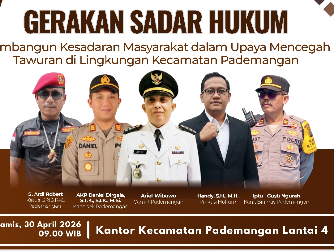Kegiatan ini akan dihadiri Camat Pademangan Arief Wibowo, Kapolsek Pademangan AKP Daniel Dirgala, unsur Binmas, tokoh masyarakat, serta praktisi hukum Handy, S.H., M.H. yang bertindak sebagai narasumber utama.