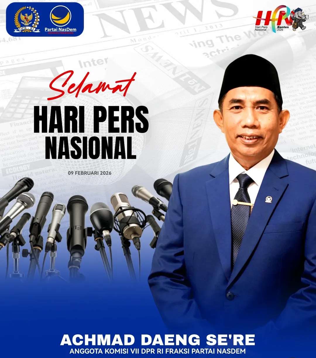 Inpopedia, Jakarta — Anggota DPR RI Fraksi Partai NasDem, Achmad Daeng Se’re, menegaskan komitmennya dalam mendukung kemerdekaan pers dan perlindungan terhadap jurnalis di Indonesia. Hal tersebut disampaikan bertepatan dengan peringatan Hari Pers Nasional (HPN) 2026.