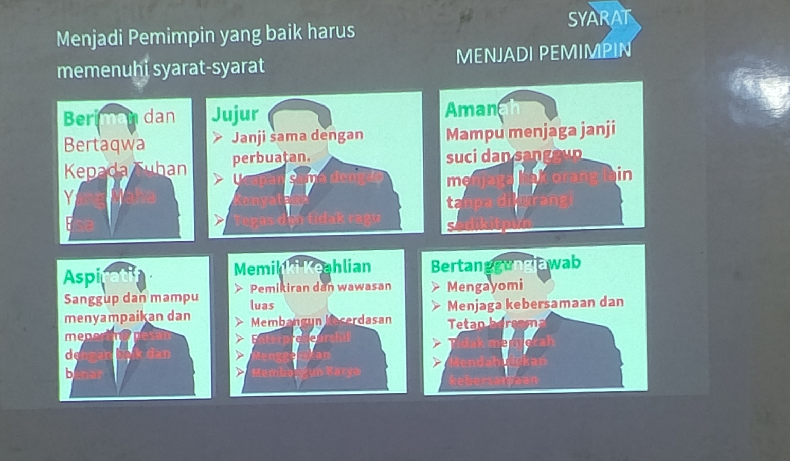 Kelima, kompetensi dan keahlian. Dunia terus berubah, dan pemimpin dituntut untuk terus belajar, berpikir kritis, serta berinovasi agar tetap relevan menghadapi tantangan zaman.