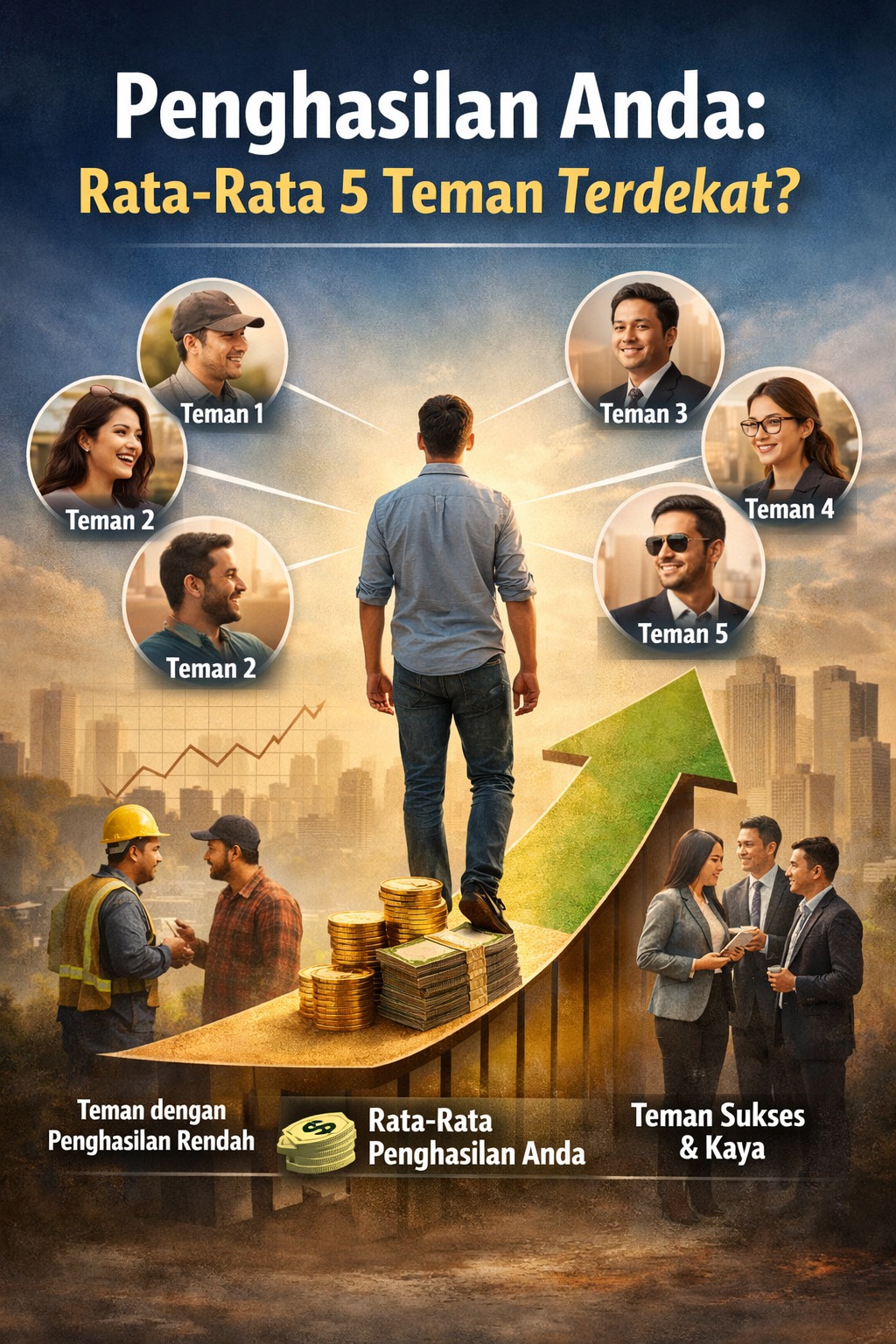 Dengan demikian, pernyataan bahwa penghasilan seseorang adalah rata-rata dari lima teman terdekatnya sebaiknya dipahami sebagai gambaran tentang pentingnya lingkungan sosial dalam membentuk pola pikir dan peluang ekonomi. Relasi yang luas dan berkualitas dapat membuka banyak pintu kesempatan, tetapi pada akhirnya keberhasilan finansial tetap ditentukan oleh kemampuan, usaha, dan pilihan individu itu sendiri.