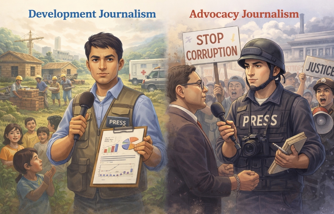 Jurnalisme pembangunan berupaya memperkuat kapasitas masyarakat dalam memahami dan mengawasi pembangunan, sedangkan jurnalisme advokasi berusaha memperjuangkan kepentingan publik yang sering kali terabaikan oleh struktur kekuasaan.