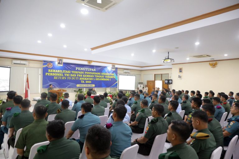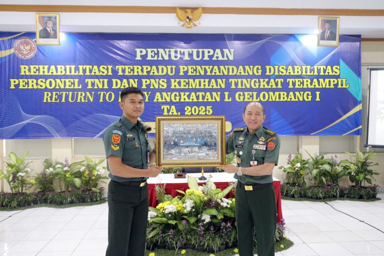 Inpopedia Jakarta – Kepala Pusat Rehabilitasi Kemhan Brigjen TNI dr. Daniel Lumadyo Wartoadi, Sp. Rad. , yang diwakili oleh Kepala Bidang Rehabilitasi Medik Pusrehab Kemhan Kolonel Ckm dr. Sunaryo Kusumo, M. Kes. , Sp. OT (K), secara resmi mengakhiri program Rehabilitasi Terpadu bagi Penyandang Disabilitas Personel TNI dan PNS Kemhan Tingkat Terampil Return to Duty (RTD) Angkatan L Gelombang I TA 2025. Kegiatan ini berlangsung di Pusat Rehabilitasi Kemhan, Jakarta, pada hari Selasa (20/5/2025).